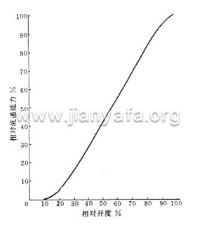 減壓閥的調(diào)節(jié)特性是由閥內(nèi)部件的結(jié)構(gòu)決定的,所謂調(diào)節(jié)特性是指流過閥門介質(zhì)的相對流通能力與閥門相對開度的關(guān)系,相對流通能力是閥門某一開度時(shí)流通能力與全開時(shí)流通能力之比,相對開度是閥門某一開度與全開度之比〔1〕。減壓閥的調(diào)節(jié)特性如圖3所示。