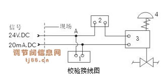 直接由調(diào)節(jié)器或手操器(對(duì)需隔離離柵的回路,還需經(jīng)輸出安全保持器),輸出一個(gè)固定的20mA DC電流。經(jīng)電阻箱分流后,就可以得到一個(gè)既安全又可靠的4~20mA DC信號(hào)。在現(xiàn)場(chǎng)校驗(yàn)定位器時(shí),其接線如圖所示。