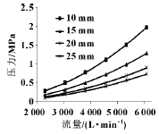 圖3為在同一開口度時(shí)調(diào)節(jié)閥在不同流量輸出時(shí)閥芯的進(jìn)口壓力。