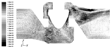 采用CFD軟件對閥內(nèi)流場進(jìn)行了仿真計(jì)算,同時(shí)給出流場壓力的輪廓圖和速度的矢量圖的可視化結(jié)果,便于流道的改進(jìn)。