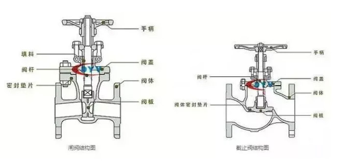 截止閥在做開啟關(guān)閉時,是上升閥桿式的,也就是說轉(zhuǎn)動手輪,手輪會跟著閥桿一起做旋轉(zhuǎn)和升降運動。閘閥是轉(zhuǎn)動手輪,使閥桿做升降運動,手輪本身位置不變。