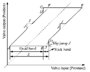 閥門粘滯指的是閥門在運行一段時間后,由于閥桿與填料之間產(chǎn)生較大的靜摩擦,從而引起的非線性故障。在當(dāng)今系統(tǒng)作業(yè)中,大部分控制回路的計算方法還是采用傳統(tǒng)的 PID 控制計算法。而在 PID 控制回路中,需要控制器花費較多的時間進行反復(fù)調(diào)節(jié)才能使得其達到一定的設(shè)定的狀態(tài),在這個過程中,控制器會不斷的改變方向。當(dāng)有氣動調(diào)節(jié)閥的回路上有粘滯故障時,控制器就會改變方向,而閥門就會進一步發(fā)生粘滯現(xiàn)象。而這種情況一直會延續(xù)到控制器的輸出大于某個數(shù)值(S)時,閥桿才會產(chǎn)生為某個(J)大小的跳動(參照下圖)。在這個無法估摸的過程中,調(diào)節(jié)量產(chǎn)生偏差則是在所難免的。而為了消除這個偏差,控制器就會再次發(fā)生改變,粘滯故障便會再次發(fā)生,最終導(dǎo)致了控制變量在以設(shè)定的值的上下來回波動震蕩。因此 PID 是引起數(shù)值震蕩的主要原因。