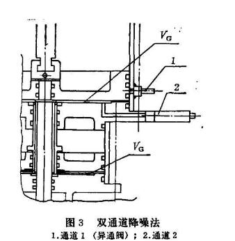 采用異通閥降噪的方法,存在著閥門(mén)開(kāi)啟過(guò)程的速度較慢、VG值小較難控制的缺點(diǎn)。但從設(shè)計(jì)分析和試驗(yàn)實(shí)踐來(lái)看,前者可調(diào)整異通閥進(jìn)氣阻尼流道截面的大小,達(dá)到噪聲與速度相互適應(yīng)的程度。后者可提高制造水平來(lái)控制各道加工質(zhì)量,可用調(diào)整墊以獲得較小的 VG值。能滿足這二個(gè)條件則此方法是適用的。